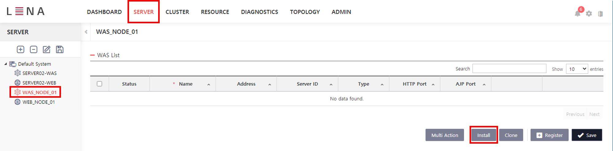 Server ID: LENA Manager 가 WAS를 식별하기 위한 명칭